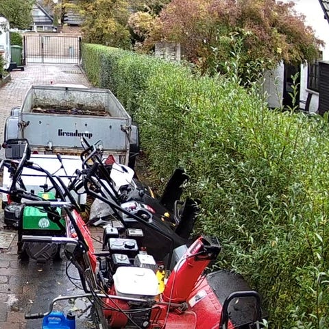 Honda Haga 870 snekost udstyret med en Honda GCV motor. Maskinen er designet til effektiv fjernelse af sne og har robuste hjul til nem håndtering på snefyldte overflader.