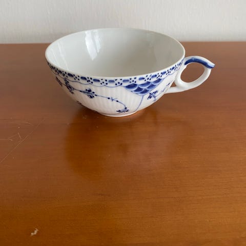 Smuk tekop i musselmalet (315) med underkop. i 1. Sortering.