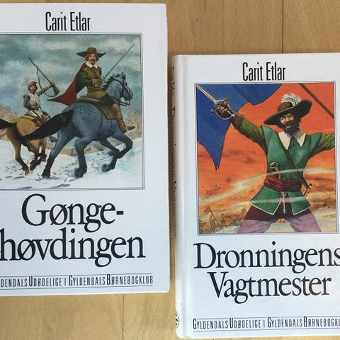 Gøngehøvdingen og Dronningens vagtmester, Carit Etlar, genre: eventyr, Hardback, indbundet, 574 sider, år 2000, fremstår i meget pæn stand.
