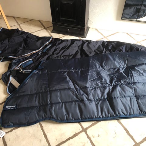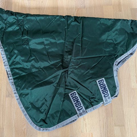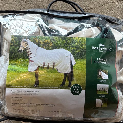 Horseware Rambo Pony Plus dækken i størrelse 5'9" 125 Dækkenet har en blå ternet farve og har 250 gram foér Designet til ponyer, det tilbyder beskyttelse og komfort til hesten.
