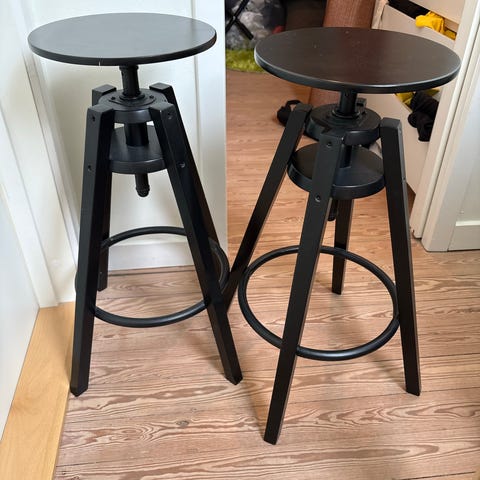 Sælger to grå højstole fra IKEA med sorte ben. Stolene er i god stand og har kun almindelige, lette brugsspor.