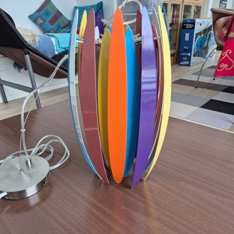 Den originale ledning og fatning er skiftet til en ny stofledning, som jeg har valgt at sno om wiren. Den kan sagtens hænge fri ved siden af som originalen, og det ændre jeg gerne for dig inden du får lampen.