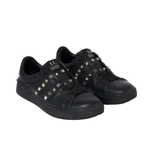 Smuk og tidløs clutch i sort læder med ikoniske Rockstud-nitter og aftagelig guldfarvet kæderem. Kan bæres både som clutch eller crossbody/over skulderen.