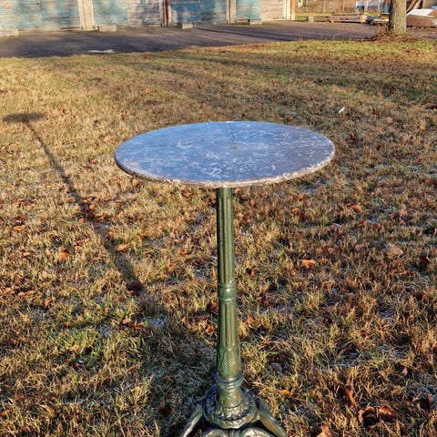 Lækkert gammelt fransk cafebord - bistrobord med stel i støbejern og plade i jern.