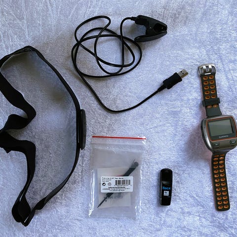 Garmin Triathlon ur. Er i god stand. Alle funktioner virker. Brystmåleren skal formentlig have nyt batteri.