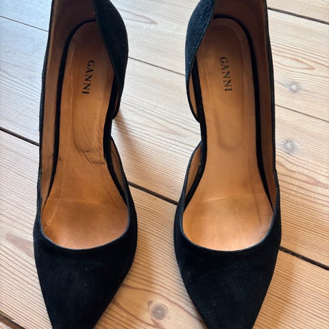 Ganni stilet, str.39/38, 7cm hæl, sort nubuck