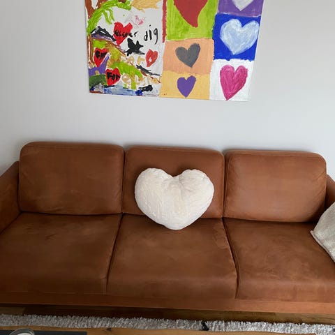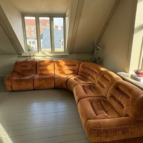 Den ene sofa er lidt slidt i stoffet, hvilket er årsagen til den lave pris. Kan repareres, hvis man har tid og forstand på det.