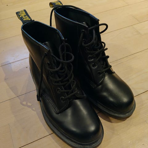 Et par ældre Dr. Martens. Det er vidst str. 44 måske 45, men nummeret er simpelthen slidt af.