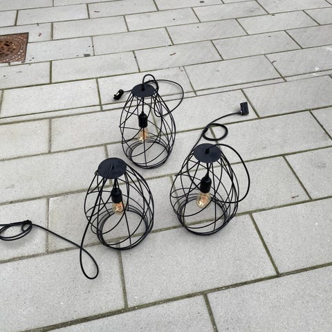 Sælger to utroligt flotte og stilrene pendellamper fra LEDVANCE-serien "Vintage 1906". Lamperne har et minimalistisk industrielt look med en flot sort finish og detaljer i messing/guld ved fatningen.
