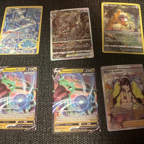 Pokémon VSTAR samling med kort, inklusive Lugia VSTAR, Mawile VSTAR og Rapid Strike kort. Kortene har forskellige angreb og evner, såsom Tempest Dive, Summoning Star, Sparkling Wing, White Blaze, Sudden Eater, Star Rondo, Clutch og Max Blaze. Hvert kort har angivet HP og angrebsskade.