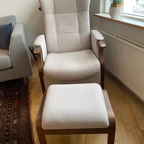 Behagelig elektrisk hvilestol med fodstøtte og ryglæn der kan lægges helt fladt for god hvile.