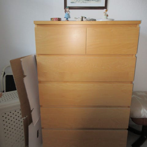 IKEA malm kommode i egetræsfiner med hvid bejdse. Kommoden har 4 store og 2 små skuffer.