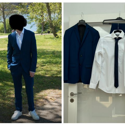 Farve: Dark Navy, str. 46 super slim. Super fin stand. Inkl. hvid 'Hankie' til brystlommen (120,- kr.) Nypris 1920,- kr. Kvittering haves.