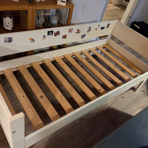Juniorseng i hvid. Købt for 5 år siden. Jeg har to der er magen til hinanden. Madrasser medfølger.