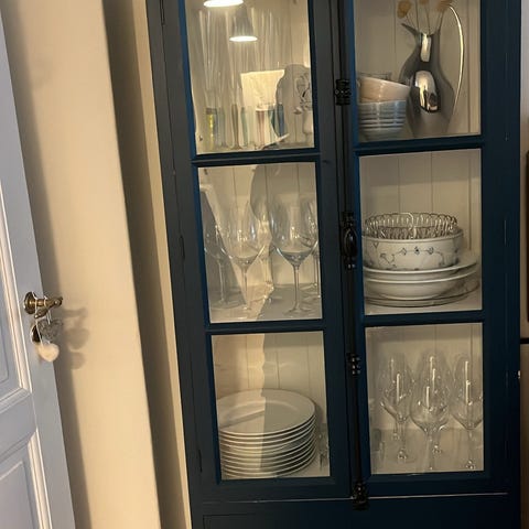 Desværre har vi haft indbrud, og i den forbindelse er der kommet en ridse i den nederste rude i skabet. Se billede. Deraf prisen på 1000kr.