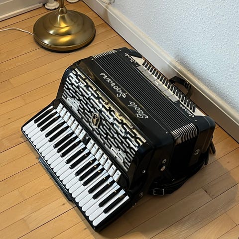 Jeg har ikke den store viden om harmonikaer/ harmonika, men denne fremstår velholdt og med brugsspor. Den spiller fint med høj lyd.