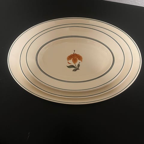 6 stk små fade af mærket assian Dane de måler 20 ×13 de er alle pæne og uden skår prisen er for dem alle Pris 30 kroner