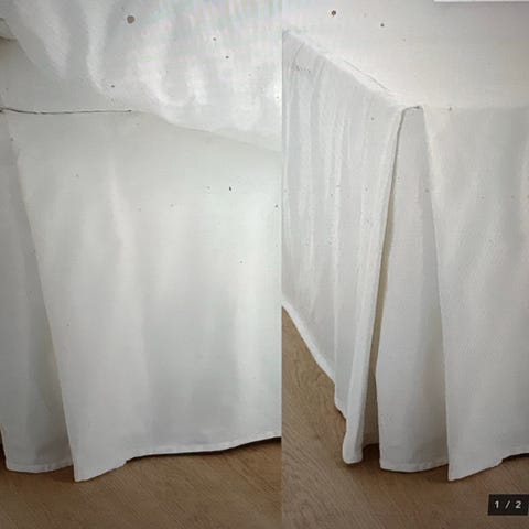 Sengekappe fra Jotex i beige/sandfarvet bomuld. Passer til seng på 160x200cm. Højde på kappen er 45cm. Pæn stand, opdagede dog en lille og knap synlig plet, da kappen var vasket - kan muligvis fjernes med vanish (se sidste foto).