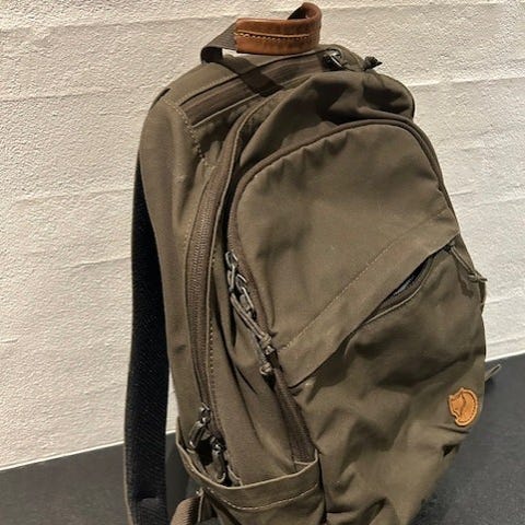 Fjallraven rygsækken, med aluminium ramme, grønne farver, tasken højde 42cm. Bredde 32cm. Eksklusiv sidde lommer, ramme højde 52,5cm. Bredde 30cm. Aftagelig ramme, ingen huller, sender via postnord