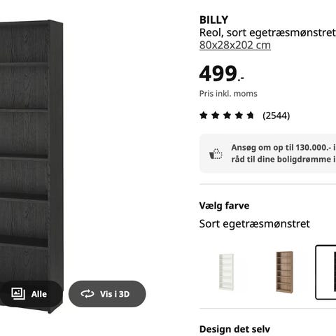 DERFOR kan en splinterny BILLY reol købt i dag (søndag 4. jan) nu blive din! Den er samlet og det hele, og du kan skisme få den for en 50er billigere end i butikken! What a steal.