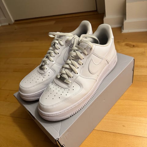 Nike Airforce 1 Sneakers i størrelse 45. Skoene er hvide og designet til almindelig brug. 07 PRM edition