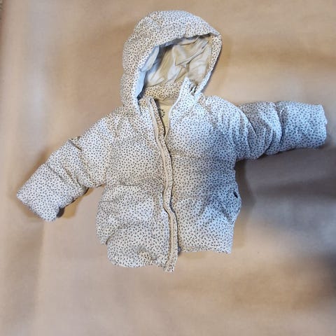 Konges Sløjd pigejakke i størrelse 140. Jakken er lavet i bomuld og har en hvid farve med et fint mønster. Produktet er designet til piger og egner sig til børnetøj.