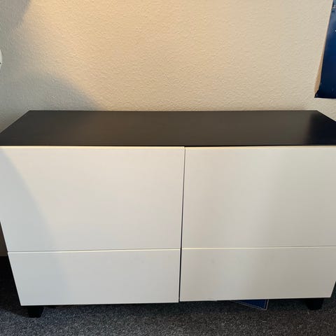 3 Ikea reoler af mærket Bestå. Valnød (udgået farve) med hvide højglans låger.
