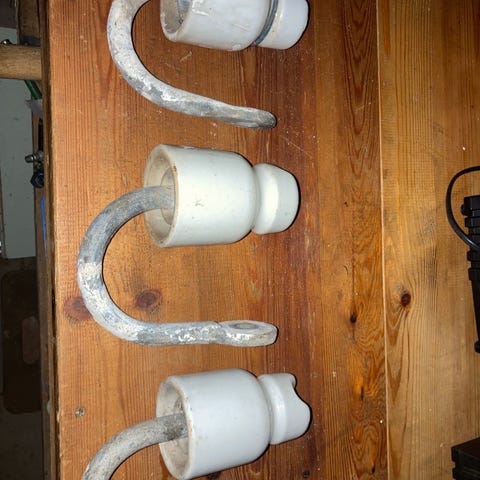 2 stk fine porcelænsklokker som har siddet på de gamle elmaster.