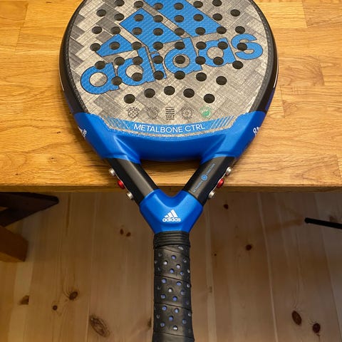 Adidas Metalbone Padelbat i hvid og sort farve. Padelbat designet til padelspil med et hulmønstret slagflade og ergonomisk greb. Leveres i original emballage.