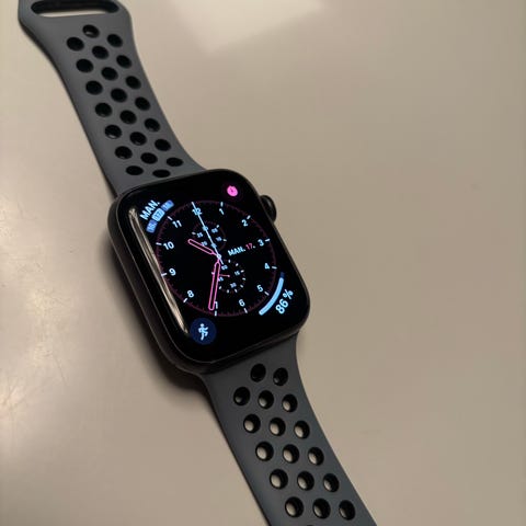 Desuden følges rem fra Sandstrøm i sort med. Sandstrøm Apple Watch mesh-remmen har et komfortabelt og elegant design med magnetisk lukning, hvilket giver en sikker pasform. Den har brugsspor, og farven er gået lidt af så den er lidt sølv i det. Man kan naturligvis tage det af og købe nye hvis det ønskes.