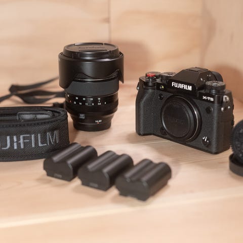 Jeg har et "fuldt" Fujifilm setup med et X-T2, tre primes (16mm F1.4, 35mm F2, og 50mm F2) og to zooms (XF18-55 og XF55-200). Udover det, har jeg en masse Peak Design-tilbehør (Travel Backpack 45L med Camera Cubes L og S), en semikraftig strop, og en let strop (Slide Lite og Leash), samt to forskellige "armbånd"-style, og en Capture Clip V2 med medfølgende mounts.