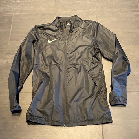 Nike Fodbold jakke til herre i størrelse S. Jakken er sort og har hætte. Designet til sportsbrug, især fodbold om vinteren. Kan også bruges som Vinterjakke. Ligner ny