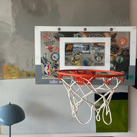 Spalding basketballmål til dør med net, designet til indendørs brug. Kan monteres på en almindelig dør for at spille basketball i mindre rum. Inkluderer bold, kurv, net og opsamlingsnet til bolden.
