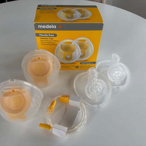 Et sæt håndfrie opsamlingsskopper til Medela freestyle brystpumpe sælges. Designet til nem og effektiv mælkeudmalkning med bærbarhed og brugervenlighed i fokus.