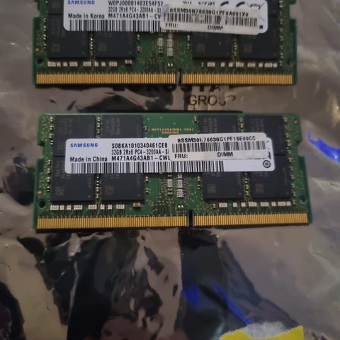 Jeg har 2 styk 32GB SODIMM DDR5 ram fra Lenovo på 5600Mhz, som aldrig har været brugt.
