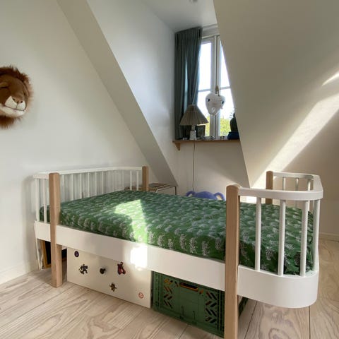 Vi sælger en juniorseng fra Oliver Funiture, da vi ikke skal bruge den længere. Den er fremstillet af birketræ. Der medfølger en sengehest. Mål er W97 x L167 x H90