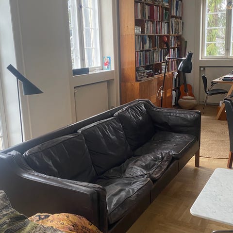 Børge Mogensen 3 personers sofa genbetrukket med brunt læder. Meget fin stand.