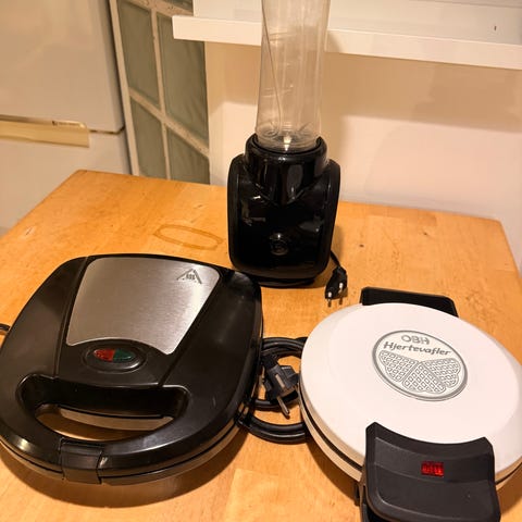 Sandwich toaster i sort farve med plads til fire sandwich. Enheden har varmeindikatorlys og non-stick belægning på pladerne for nem rengøring.