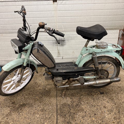 Hej. Jeg sælger, min danske vespa ciao da min, knallert tiden er over. Den er helt ny renoveret med alt nyt i motoren samt ny motor blok. Den har kørt 300 km i motoren. Alt det virker lige som det skal. der mangler forbremse. Den sælges som lovlig køre 32 km/t. Alle tun dele medfølger, samt stel forstærker som er, af og på montagelig. Den køre super godt. Den starter hver gang. Og der er ingen mislyde eller noget.