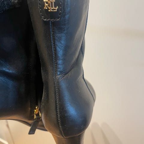 Ralph Lauren støvler i størrelse 39. Støvlerne har en rød farve og er lavet af ruskindsmateriale. Designet er uden snørebånd og med elastiske sider for nem af- og påtagning.