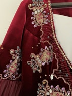 Festkjole, Kaftan, str. M, Bordeaux og hvid, Velour, Næsten som ny, Brugt en gang. Købt i Tyrkiet. En tung kjole, men meget behagelig. Den kan passes af M-L, da den hvide kjole har elastik bagpå.