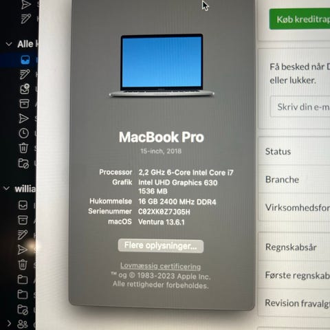 Sælger min MacBook Pro 15,4” (Retina). Den fungerer som den skal og er perfekt som solid hverdagsmaskine til studie eller arbejde.