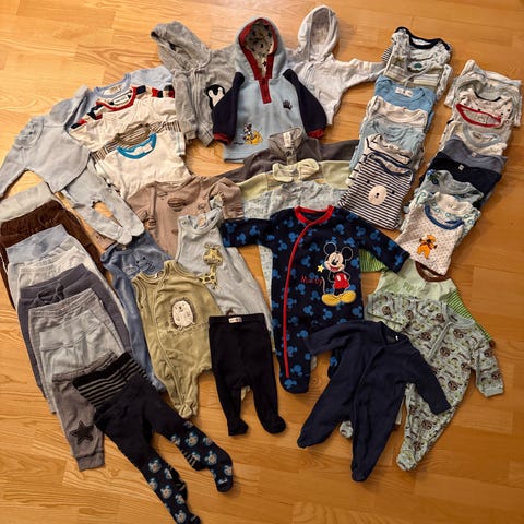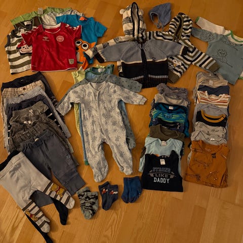 Tøjpakke med 50 styk tøj i størrelserne 50, 56 og 62