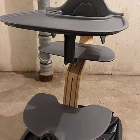 Stokke Højstol til børn. Fremstillet i træ med en robust konstruktion. Designet til at give støtte og komfort under måltider. Egnet til brug i hjemmet for små børn. 2 stk.