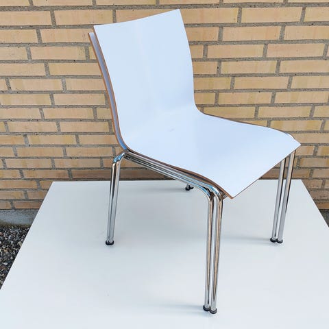 Stabelstol med medestel af 11 mm tråd, der er af blankforkromet stål.