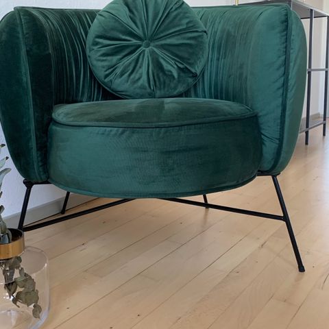 Super fin Ellos lænestol “LENNOX” velour i rosa sælges. Fin stand - dog mini plet på sæde (ikke forsøgt fjernet) Nypris: 3.500,