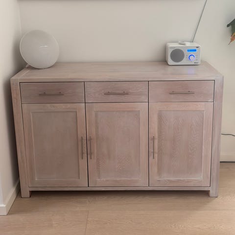 Flot skænk som står næsten som ny. Kommer fra et hjem uden dyr eller børn. Igen skaber eller ridser. Vægt er ca 20 kg.