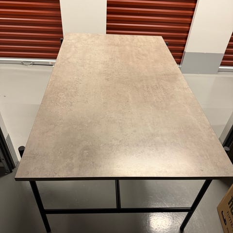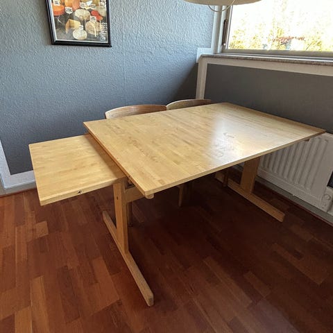 Mindre spisebord som passer perfekt til mindre bolig da den ikke fylder meget. Stål stel og træ bordplade.