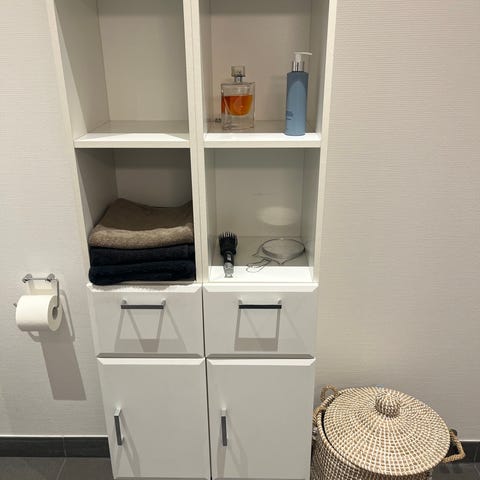 Elegant opbevaringsskab med 4 skufferMangler du ekstra opbevaring i et lille rum? Dette slanke skab på 30 × 30 × 82 cm hjælper dig med at holde styr på hverdagens småting. Det klare, enkle design i hvid giver et friskt og roligt udtryk, der passer smukt i badeværelse, entré, stue eller køkken.Stabil og pladsbesparende løsningSkabet er fremstillet i MDF for stabilitet og leveres med anti-tip-enhed for ekstra sikkerhed. De fire praktiske skuffer gør det let at organisere alt fra toiletartikler til nøgler og kontorsager. En pladsbesparende opbevaringsløsning, der blender ind i en lys, landlig stil.Tilbehør medfølgerDu får et fritstående opbevaringsskab, tilbehørspose og vejledning, så du kan komme hurtigt i gang.Pladsbesparende skab med 4 skuffer til små rumEnkelt, hvidt design der passer i flere rumStabil MDF-konstruktion med anti-tip-enhedOrganiserer hverdagens ting i stue, køkken, entré og badeværelseFarve: HvidMateriale: MDFMål (H × B × D): 82 × 30 × 30 cmVægt: 8,3 kgSkuffer: 4Placering: Fritstående