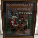 Rammen er 37,5 x 45 cm. Glas over broderiet, rammen har brugsspor, lidt kant slid er ellers i pæn stand..